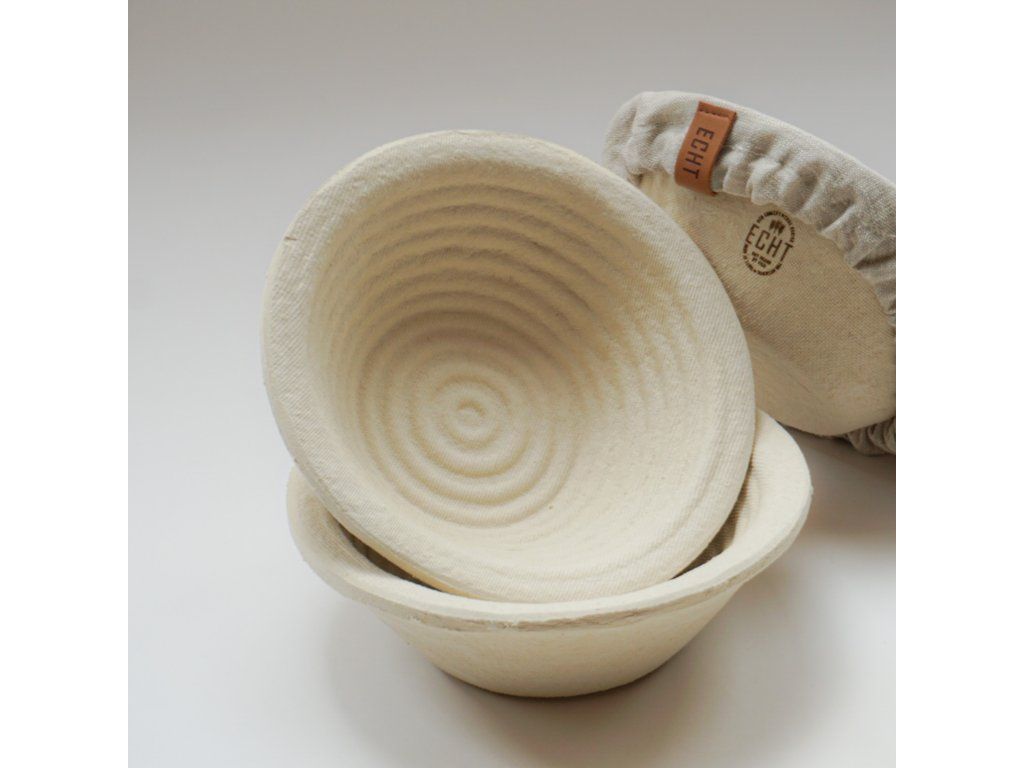 Kulaté ošatky vyrobené ze smrkové celulózy, prodyšného a odolného materiálu, bez chemických přísad. Správně vypracované těsto z nich vypadne naprosto hladce. I na tyto ošatky pasují lněné čepičky.